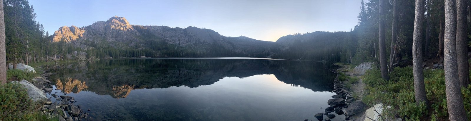 Sunrise had some nice color and as I hiked past Shadow Lake I saw some sunrise illuminated mirror images in the lake’s surface. Nice start.