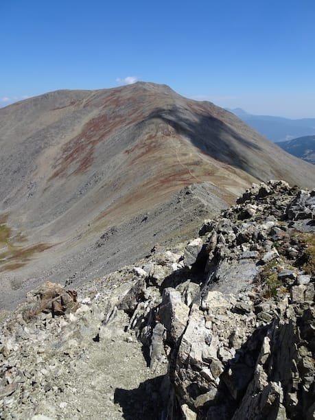 This part of the trail was a pleasant dirt trail that just descended a little and then climbed at a nice gentle slope, so was a nice change from the rocky paths I had clambered over all day. Mt Bross was actually similar to Mt Cameron with a flat rounded summit.