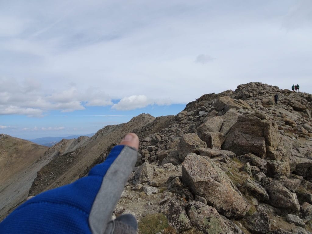 So after exploring the summit, taking enough photos to line the trail back to the trail head if I printed them out, and soaking in the grandeur of the mountains surrounding me, I had to make a decision: Mt Massive has 5 peaks above 14,000 feet. Only the main summit is an official 14er, so the sub-peaks wouldn’t add to my official total, but they were fairly close to the main summit. Green Massive, North Massive, and “Point 14,169” (cleaver name 🙂 ) could be reached from the main summit with only a little pain and grumbling and South Massive that was near the trail back down to the trail head. But with the weather report predicting rain and possible thunderstorms later that day, it would probably not be safe to attempt the three to the north of the main summit. As tempting as South Massive would be to tackle on the way down, I also couldn’t convince my body to climb up about 400-500 feet to get up to that summit.