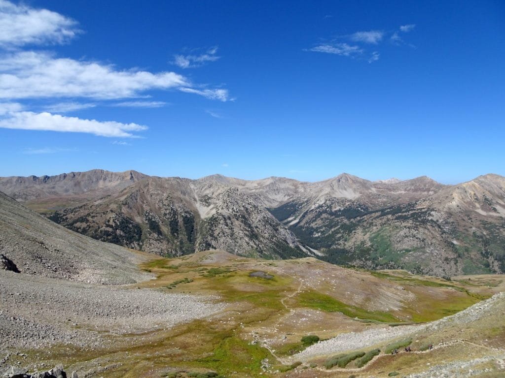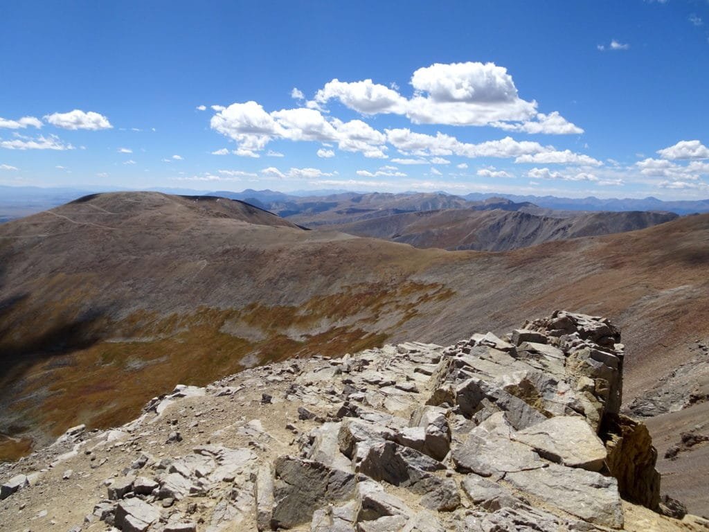 I was also a little amazed at how high the vegetation line was in the Rockies. Many of the summits actually had small patches of grasses scattered around. In the Sierra Nevada Mountains it’s unusual to find much more than rock and more rock above 13,000 feet. But since I had seen small bushes and grasses up to and a little above 15,000 feet in Peru, I knew different climates lead to different vegetation patterns.