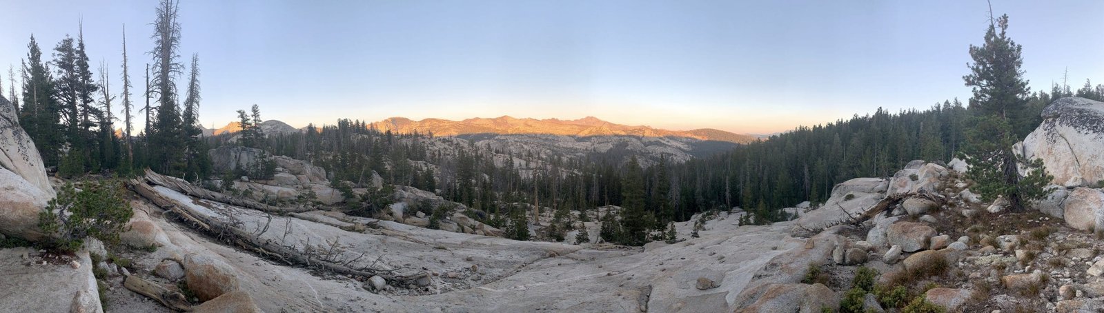 I had thought I might make it to Cathedral Lakes this day, but as I got water at the Sunrise spring that is just below the Sunrise Backpacker’s Camp I felt like the additional 4 miles I’d need to hike to get to Cathedral Lake that day would be too much for that day. I didn’t want to stay at the Backpacker’s Camp since it was usually crowded, didn’t have a view from the sites, and didn’t have the bathrooms open this year anyway (due to COVID-19). So using the campsite info again, I found a fantastic site near the springs with a panoramic view of the mountains to the northeast.