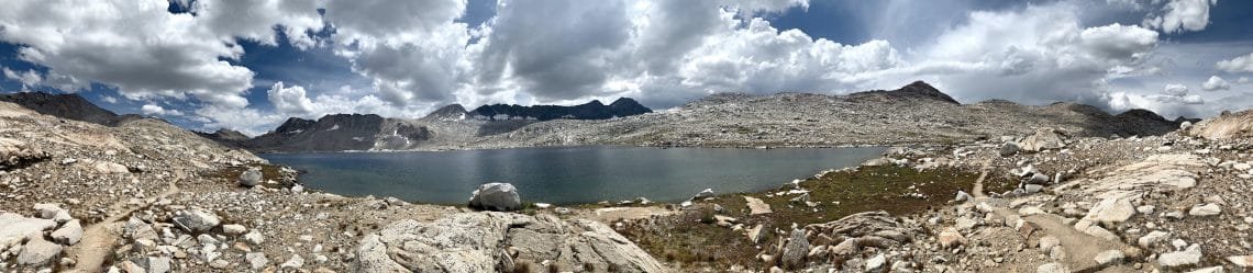 By the time I hit Wanda Lake around 11,426 feet, it was mid-afternoon and the skies were growing darker and darker. I started to hear thunder in the distance. Similar to the day before, but at the same time the skies looked more sinister and I could see rain falling in the distance beyond where Muir Pass should be.