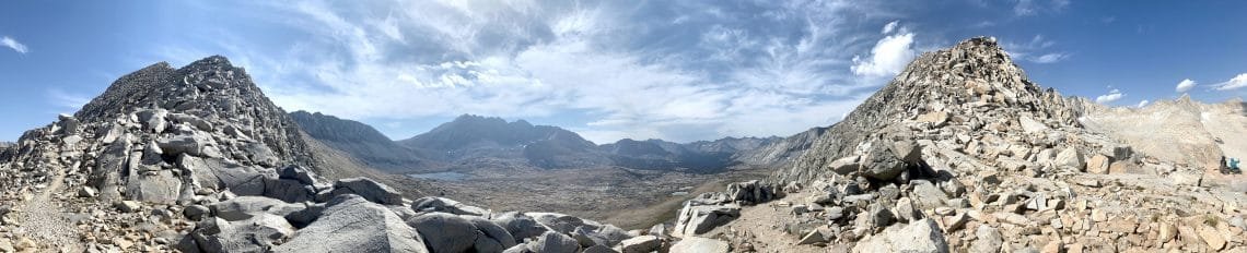 The view from the top of Mather Pass was spectacular! Yeah, I know I use that term a lot for the views from passes, but it’s true. There was a little haze to the far south, but otherwise the skies were clear and I felt that I could see forever.