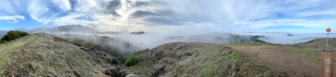 The views were very nice once I could see something. Even the low layer of fog all around me also gave some nice ‘sea of clouds’ views of the surrounding hills. I could see the Oakland Hills, ridges of Briones Regional Park, and Rocky Ridge above the fog. Very nice.