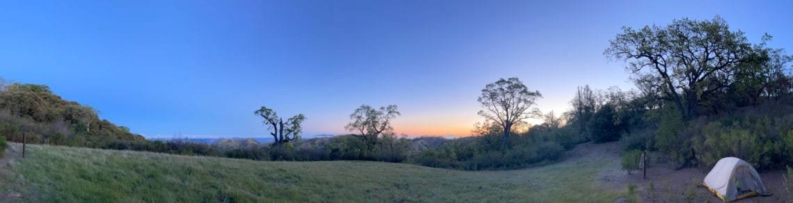 I didn’t really know what the 2 campsites looked like, so I just took #1 when I made the reservation. Turned out to be a good choice. It was well off the trail and had a view of the sun as it was setting behind the hills to the west, a view of Mt Diablo to the north, and should have a view of the sun when it rose the next morning. On the other side of the trail, campsite #2 didn’t look anywhere near as nice and seemed to have a beehive nearby based on the buzzing. But I didn’t look around that side too much.