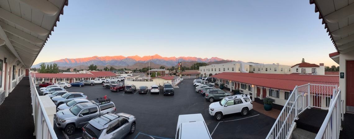 Since my hotel room faced the west mountains, all I had to do is go out onto the walkway in front of my room and enjoy the show. If I drank coffee, I’d have drank it watching the orange light descend like a window shade over the mountains. What a glorious sight to behold.